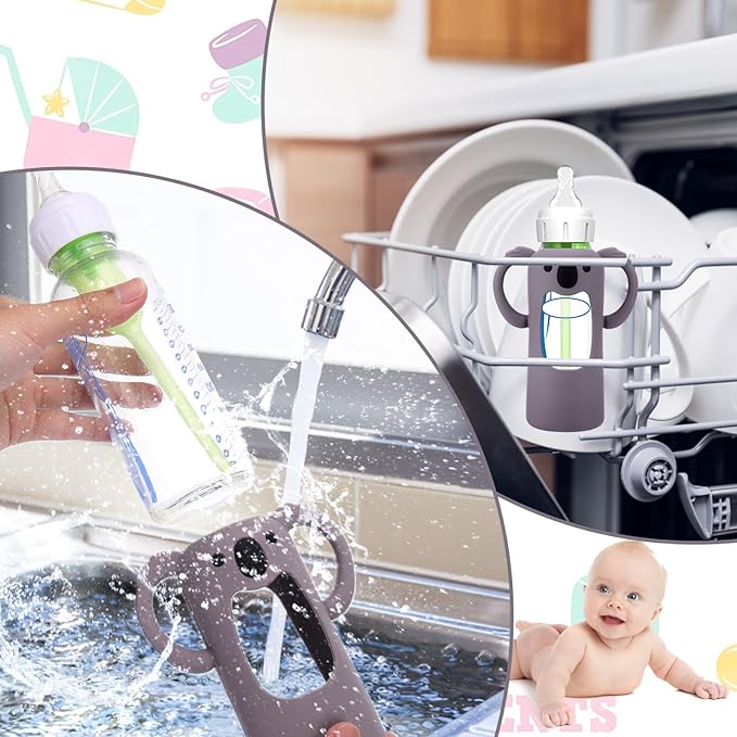 - Food Grade Silicone - Koala Silicone Baby Bottle Sleeves is made of food grade silicone,no chemical additives and BPA free, which is safe to use. The baby bottle sleeves use of anti-stick silicone material and unique shape design, will not stick to the dust๏ผhairiness,etc, which make it safer and more secure for you to use