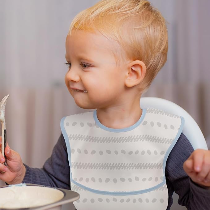 - Waterproof and Spill-Proof:Crafted from 100% polyester (softer than silicone!), these infant light blue ocean baby feeding bibs feature a waterproof design keep your baby clean and dry during self-feeding sessions.