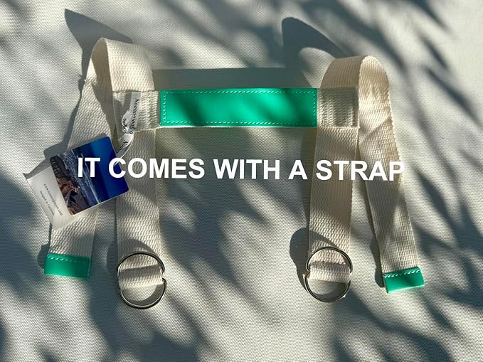 - Includes: 1 white canvas mat, faux leather handle, and webbing strap