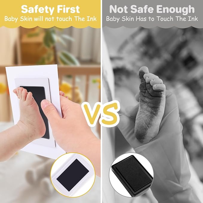 - Clean-Touch Inkless Pad:This newborn footprint kit features a mess-free ink pad that is safe for your baby's delicate skin, ensuring a clean and easy way to capture tiny hand and footprints. With the proper size of 3.7*2.3 inches, our inkless pad is perfect for newborn babyβs hand and footprints