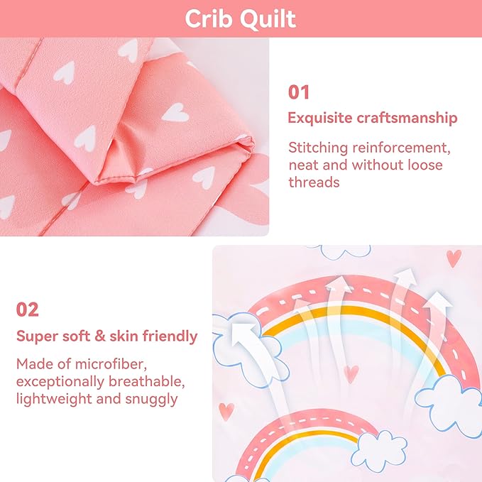 Viviland 3 Pieces Baby Bedding Set for Boy Girls, Baby Bedding Set for Newborn, Infant & Toddler - Rainbow