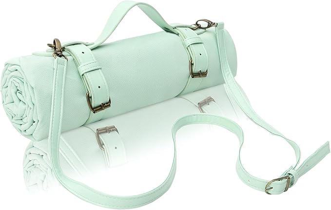 - Includes: 1 canvas mat, faux leather handle/should strap