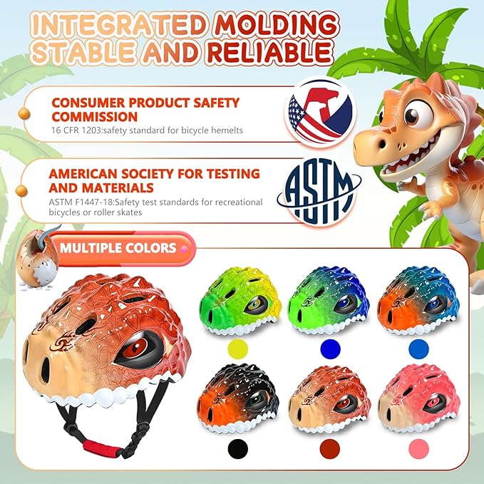 - 【LIGHTWEIGHT AND ADJUSTABLE】Kids bike helmet adopts one-piece molding technology, and the weight of only 240 grams makes children feel comfortable to wear for a long time. Suitable for head circumference: 48-54cm/18.9-21.2 inches; equipped with an adjustable head circumference dial and chin strap, it can be adjusted according to the growth of the child to provide the child with maximum comfort and fit.