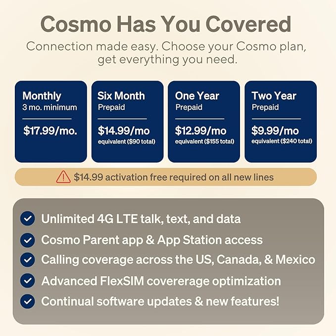 - SECURE CALLING & MESSAGING –– Get the best kid-safe connection with Cosmo. Reliable family-safe calling coverage across the US, Canada, and Mexico. With Cosmo's True Texting, securely share text, pictures, audio, and even short video messages with parent-approved contacts to bring everyone closer together.