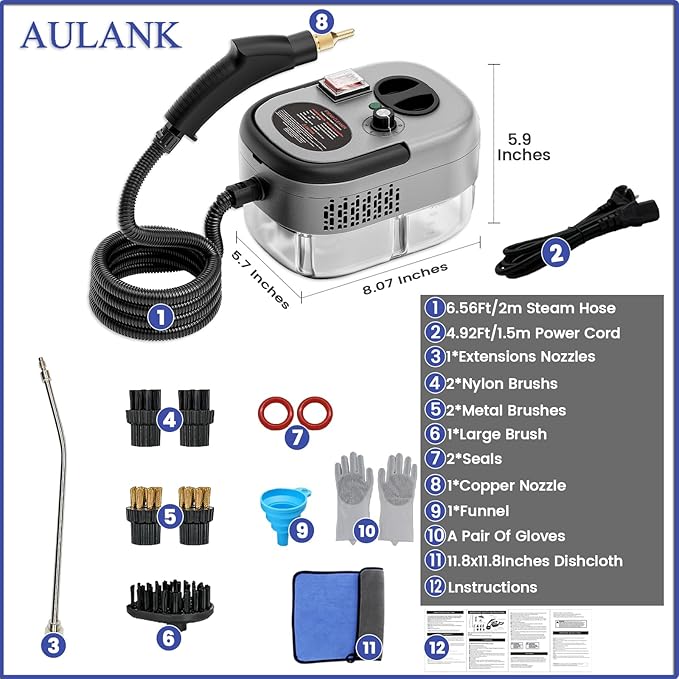 - 【Multi-function Steam Cleaner & Multiple Accessories Set】Our AULANK powerful home steam cleaner includes a wide range of brushes accessories, and this all-in-one steamer for cleaning.It can effectively clean stubborn greasy dirt and stains, and is suitable for cleaning walls, cooktops, smoke lamps, microwave ovens, washing machines, refrigerators, etc., You can choose the accessories which you needed and to clean hard-to-reach areas.Make your home cleaner and fresher than ever.
