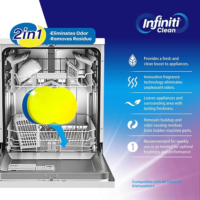 - Odor Elimination & Freshness: Infused with our dishwasher cleaner and deodorizer tablets, your dishwasher will be rid of unpleasant odors and left with a clean, fresh scent after every use