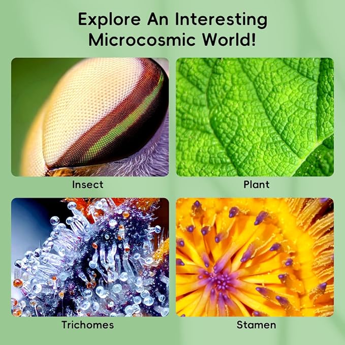 - 【Multi-scenario Use】This insect microscope is an ideal gift for kid's STEM education, perfect for observing insects, butterflies, lab slides, flowers, and other objects requiring precise magnification.