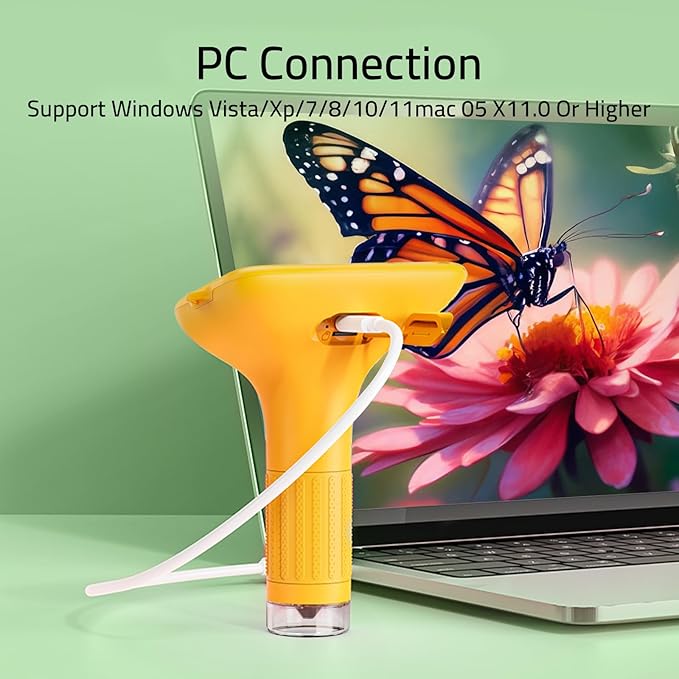 - 【PC Connection Supported】This pocket microscope is compatible with Windows and MacOS systems and can be connected to a computer via USB for larger-screen observation and analysis. Please refer to the user manual for specific connection instructions.