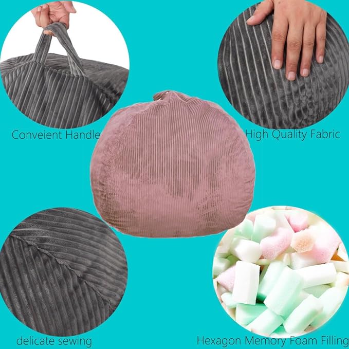 - FUN FOR EVERYONE - These convenient foam cushions are the perfect addition for your dorm rooms. Easily accessible and lighter than most home recliners. The bean bag chair handle is devised on the top of bag so that children can move them easily. With the double-layered combined fabric on the back, we guarantee its durability and obsolete the inner bag to increase the fluidity of stuffing, in order to wrap the body faster and more comfortable in accordance with ergonomics.