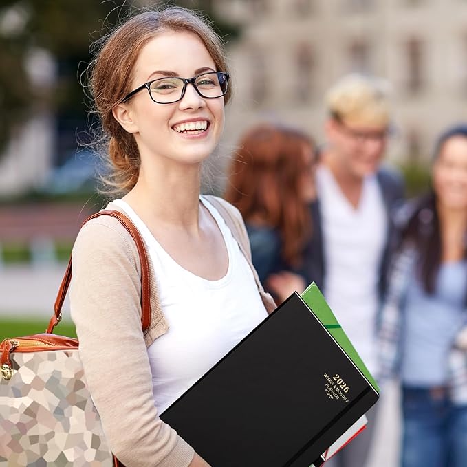 - 📔USEFUL DESIGNS - The hard cover of planner 2026 protect pages from being damaged | The elastic pen loop is always available for your pen, useful and convenient | You can make a better mark with 2 bookmarks | Inner pocket, it is easy for you to pack business cards stickers | Large size(9" x 11"), enough space to meet your writing needs.