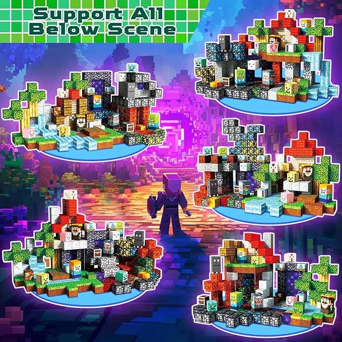 - 【Abundance of Gaming Elements】Let's embark on an adventure with magnetic building blocks! Spark the imagination of children with themes of lava, portal and forest. These magnetic blocks encourage open-ended play, allowing kids to construct, demolish, and rebuild as they please. Safe, durable, and designed for little hands, our magnetic cubes make learning fun, enhancing focus, patience, and motor skills—ideal toys for kids 3+ years old.