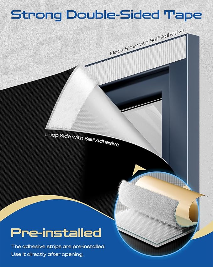 - Upgraded Hook & Loop Installation - Featuring industrial-grade Hook & Loop tape, no drilling or professional tools are needed. Simply fix the patches on the window frame (suitable for both flat and curved surfaces), align the window curtains, and press to complete the installation in just a few minutes. For creases, iron at 120โโ150โ with a cloth to maintain the durability of the fabric and fastener