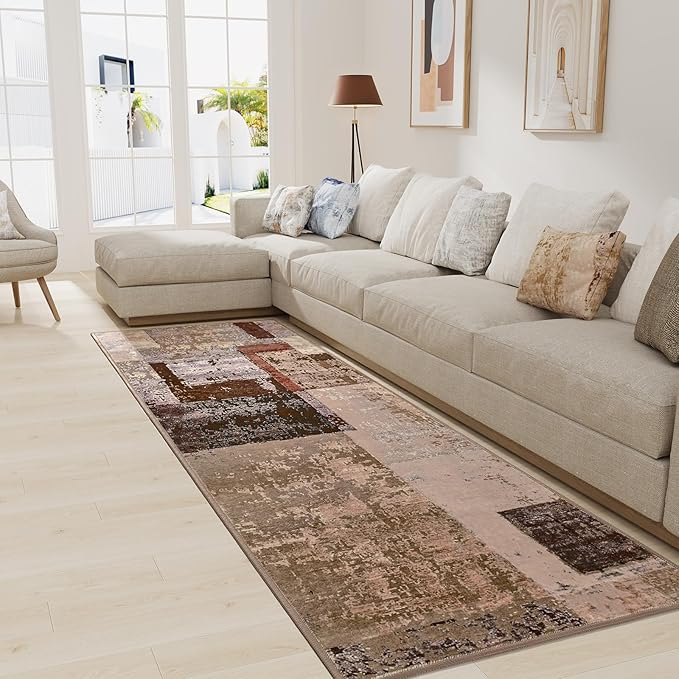 LOCHAS Washable Runner Rugs for Hallway, 2x6 Non Sip Soft Rug for Bedroom Entryway Kitchen Laundry Room, Long Abstract Carpet for Indoor Floor Bedside, Geometric Vintage Home Decor, Pet & kid Friendly