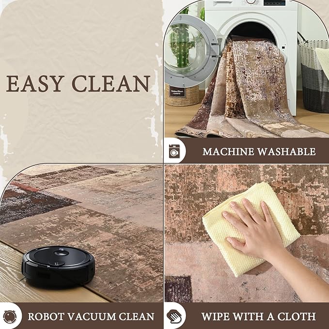 - Machine Washable Area Rug: Washable carpets offer the convenience of saving time and labour. The live water cycle provides a more thorough clean and effectively reduces the growth of harmful substances. For small stains, use a cleaning agent and a damp cloth to spot clean, or use a vacuum cleaner. Indoor rug can be rolled to save space.