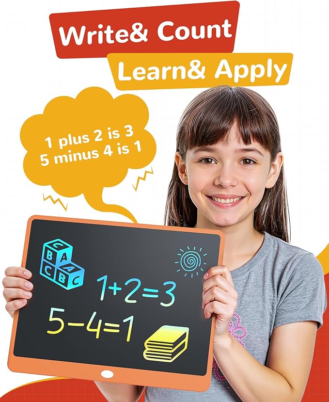 KOKODI LCD Writing Tablet, 16 Inch Colorful Toddler Doodle Board Drawing Tablet, Erasable Reusable Electronic Drawing Pads, Educational and Learning Toy for 3-6 Years Old Boy and Girls(Orange)