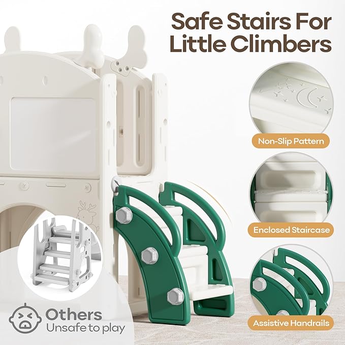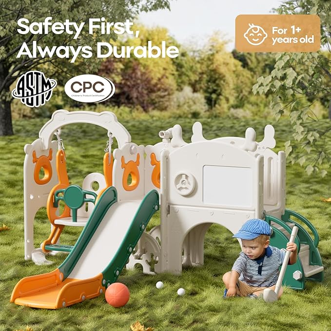 - Unique Upgraded Features: This playset brings even more joy with a swing, the latest golf set, and a drawing board, complete with colorful markers and blackboard eraser, sparking creativity and improving coordination in a fun-filled way