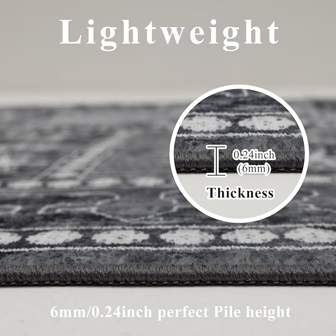 Washable 6x9 Area Rug for Living Room, Carpet for Bedroom Dining Room, Non Slip&Non-Shedding Resistant Low Pile Vintage Print Rug for Home Office (Grey)