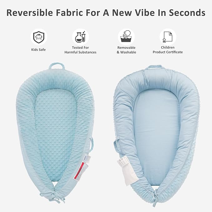 • SOFT & PLUSH COMFORT FOR NEWBORNS – Designed with cozy plush sides and a dense cushioned base, our baby lounger provides a safe and snug resting spot that helps your little one feel calm and supported.