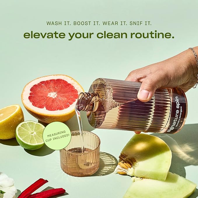 - SIGNATURE SPIN: A classic scent with modern cleaning power. The Everything Wash detergent removes dirt, stains, and odors, while the scent of Signature Spin keeps it fresh with dewy melon, zesty Italian citrus, tart rhubarb and classic white musk. Whether it’s a quick load or a heavy duty wash, this scent will make it feel timeless.
