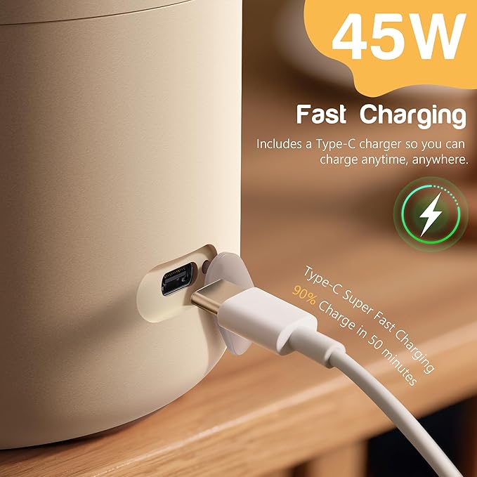 - 【 Fast Charging & 8H Constant Temp 】45W Type-C fast charging gets the bottle warmer to 90% charge in 50 minutes—so you can heat milk or water quickly. No waiting when your baby’s hungry: chilled breast milk or room-temp formula warms to perfect temp in minutes. The Type-C port works with laptops, power banks and car chargers for easy charging at home or on the go, plus it maintains constant temperature for up to 8 hours.