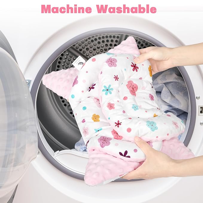 Infant Car Seat Insert with 3 Strap Covers, 3 in 1 Reversible Floral Baby Car Seat Head Support for Newborn, Baby Girl Newborn Essentials for Preemie to Infant, Stroller, Swing, Bouncer (Pink)