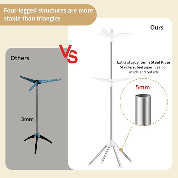 - [Sturdy & Durable Construction] Crafted from premium materials, the 4-leg design offers enhanced stability over traditional 3-leg racks, providing robust support for wet or semi-dry clothes with the promise of long-lasting durability for everyday use.
