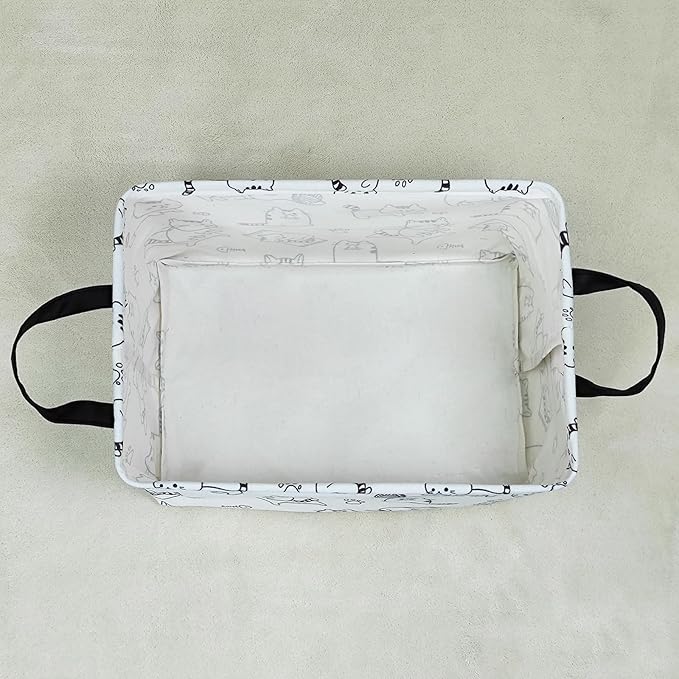 LANGYASHAN Rectangular Storage Bin Collapse Canvas Fabric Cartoon Storage Basket with Handles for Organizing Home Kitchen Boys and Girls Toys Office Closet Shelf Baskets (Rec Cat)