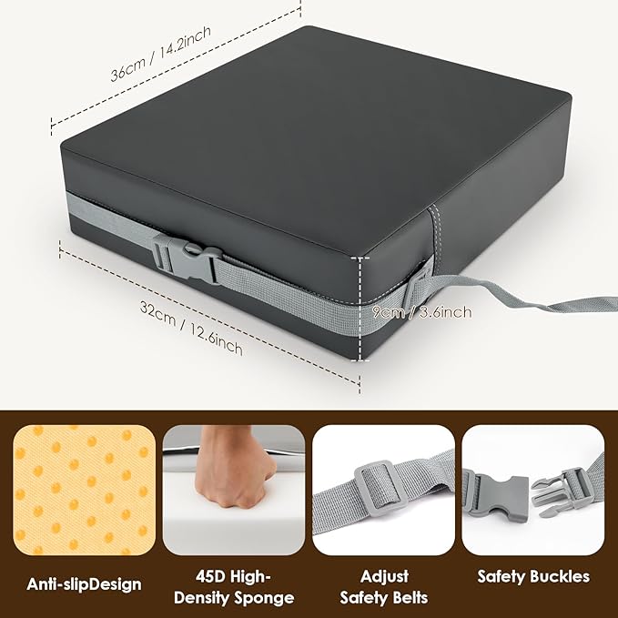 - â ăHigh-Density Support Foam - Long-Term Comfortă:Built with a 50D high-density foam, this chair booster seat for toddler 2-12 retains its shape and density even with long-term use,supporting your child well during mealtimes. Whether used as a toddler seat cushion, a kid booster seat for dining table, or even for floor play, your little one stays comfy and secure.Size:14.2 x 12.6 x 3.6 + 14.2 x 14.2 x 2 inch, total 2 pcs