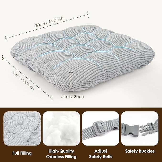 - đă2 Adjustable Straps + Non-Slip Bottom for Safetyă:Equipped with 2 Adjustable Safety Buckles and a non-slip bottom,at the same time, the length of the bottom seat belt is appropriately increase, so the cushion can be better fixed on the most dining chair.This booster seat for chair stays firmly in placeâno sliding forward or sideways. Perfect as a booster chair for dining table, booster chair for toddlers 2-12, or booster seats for kitchen chairs at home or while traveling.
