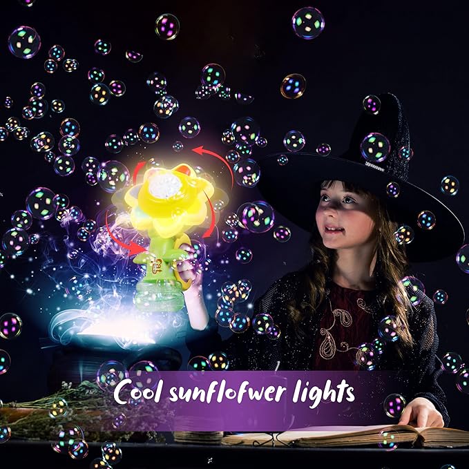 - Dance With Bubbles: The newly upgraded flower bubble machine can produce 20,000+ bubbles per minute, rotating at your own pace to bring vitality and movement to any scene. Unlimited bubble fun for all ages: Watch the air fill with sparkling bubbles and create unforgettable memories for kids and adults alike! Whether it's a birthday party, a backyard gathering or a fun-filled playtime, our bubble machines create a magical atmosphere that appeals to all.
