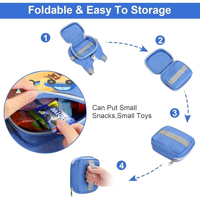 - Foldable & Reflective: There is a small pocket on the back of the harness, you can fold it when you don’t need it, which is very convenient to carry. The wrist link and tether are reflective, making it secure for children to go out at night