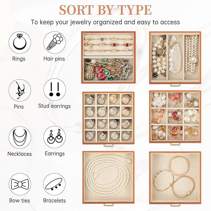 - Product Dimension:8.3"W x 5.9"D x 10.3"H. Elegant Durable, Attractive appearance with leather surface and soft velvet lining. Sturdy construction and quality material make it very durable. The jewelry holder can tidy your table and protect your precious jewelry for a very long time .Material: MDF(Medium Density Fiberboard),Velvet,Faux Leather