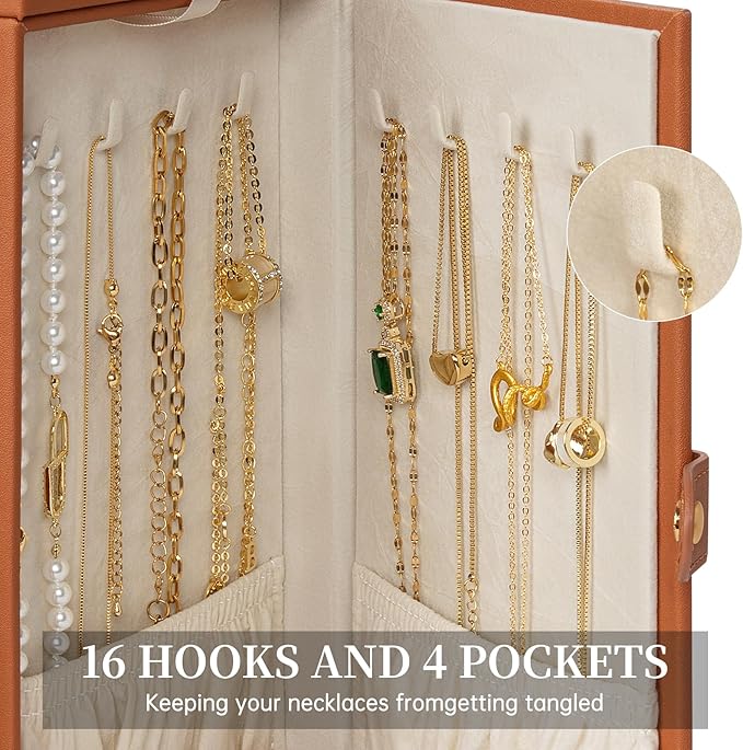AKOZLIN Jewelry Box Organizer Functional Leather Jewelry Storage Case for Women Girls Ring Necklace Earring Bracelet Holder Organizer with Mirror