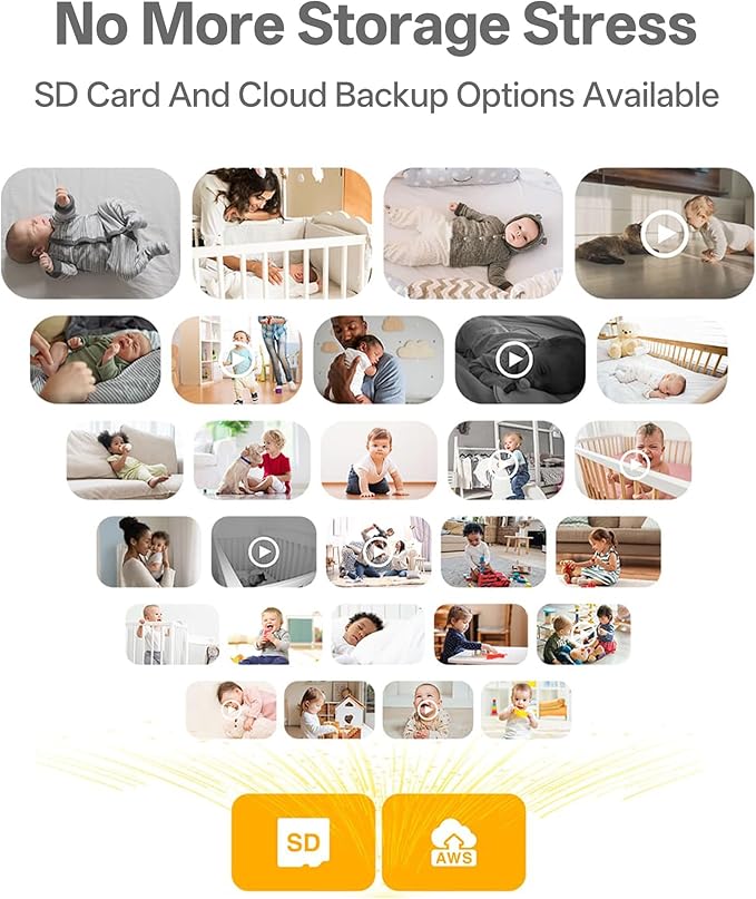 - Support Cloud Storage and SD Card Storage: After starting the service, you can play back videos at any time. The videos can be exported in MP4 format, recording precious moments of baby growth.