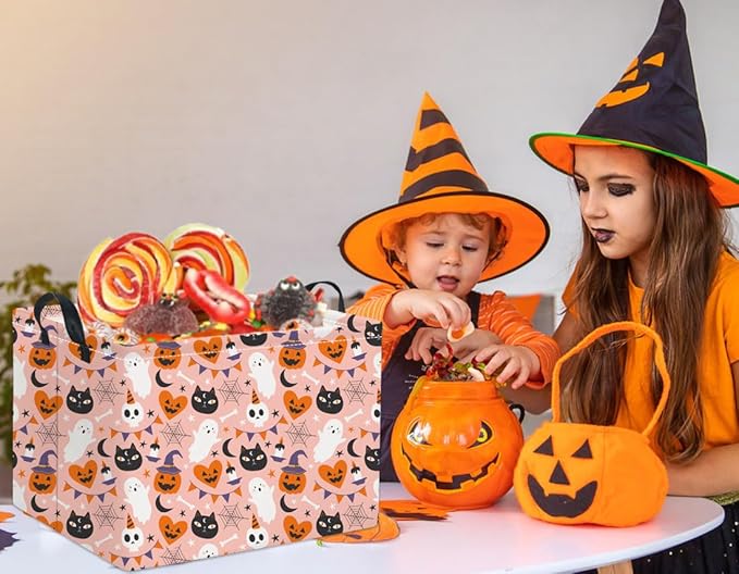 HIYAGON Rectangular Halloween Basket for Boys and Girls Kids Trick or Treat Pumpkin Basket for Halloween Parties Cute Storage Bin Organizer Box Room Decor(Pink Halloween)