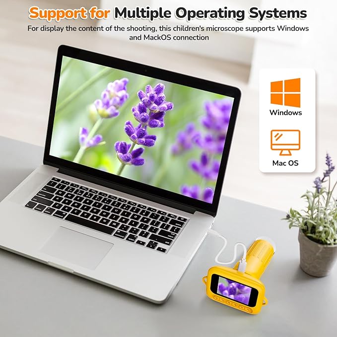 - Share With Friends: For better share your observations with your friends, this mini microscope for kids supports Windows and MacOS, so you can store the observations on computers with different operating systems for sharing.