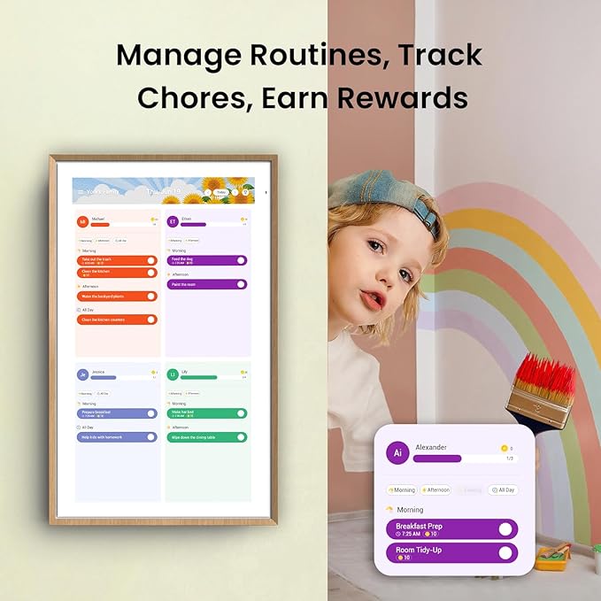 - Interactive Chore Chart & Routine Planning — Powered by our self-developed ApoloSign Calendar system—assign tasks, track with color codes, motivate kids with a rewards system, and manage grocery, shopping, or wish lists from the Calendar or Mobile App.