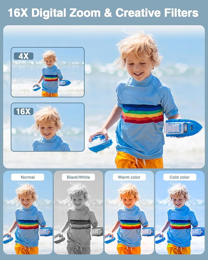 - SAFE MATERIALS & CREATIVE FILTERS - Made of high-grade and eco-friendly reliable materials, the kid camera is safe and non-toxic, durable and withstands drops. This digital vlogging camera for teens also supports six cute filter effects to choose from, kids could create more adorable colorful pictures.