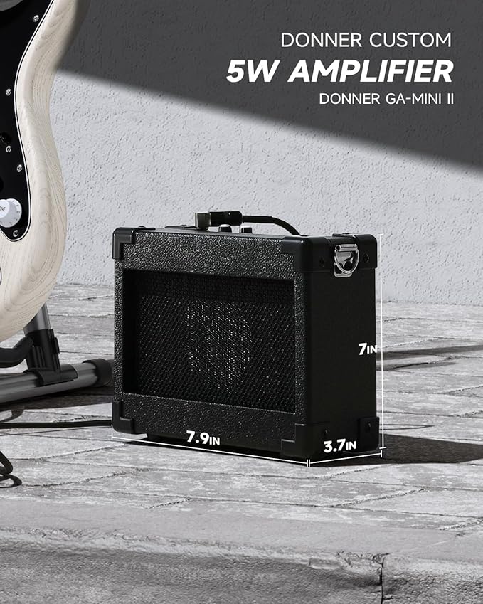- COMPLETE BEGINNER’S PACKAGE:Open the box, and you’re ready to play. This beginner kits includes the DST-80 electric guitar, custom 5W amplifier, durable gig bag, capo, strap, extra strings, digital tuner, amp cable, picks, and access to free online lessons from Donner to help you grow and shine