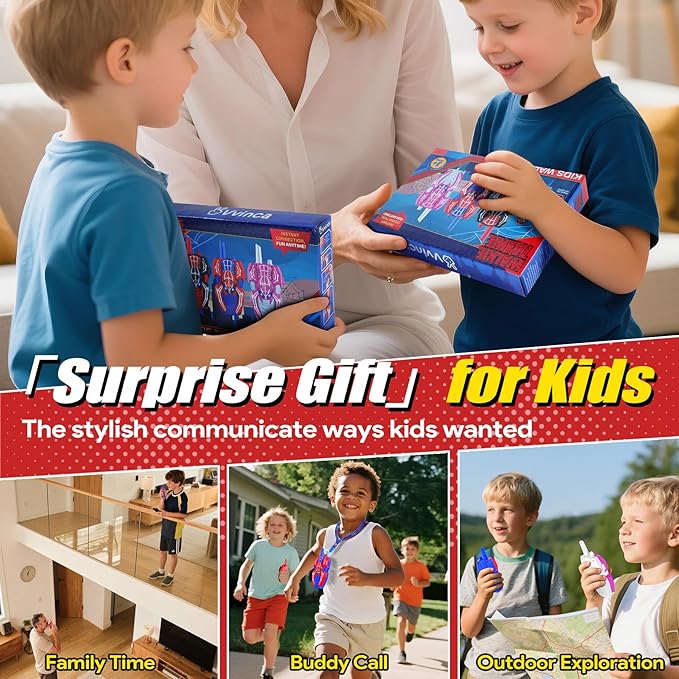 - Clear Sound & Long Range : Experience kids walkie talkies crystal-clear sound with a communication range of up to 1000FT. Whether your kids are playing indoors or outdoors, Vvinca walkie-talkies ensure they stay connected with no static or interference.