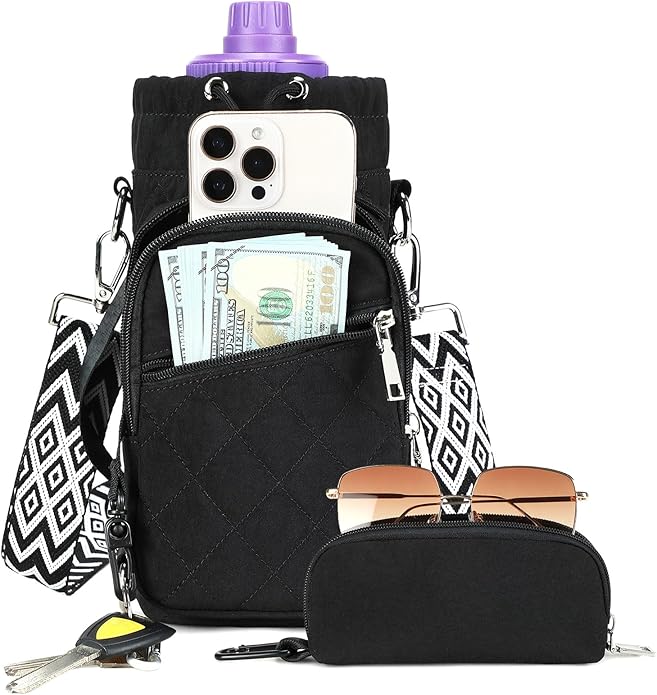 Water Bottle Carrier Bag with Strap, Water Bottle Holder Crossbody Bags for Women Men for Walking, Hiking,Cycling