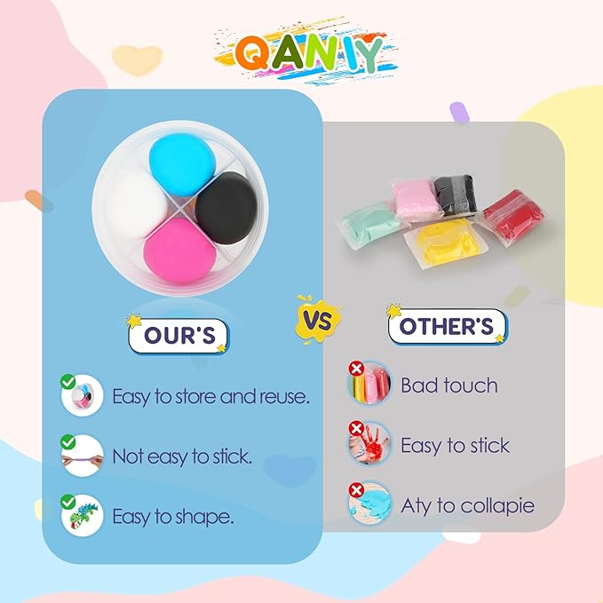 - 【Safe and High-Quality Materials】: Our air-dry clay is made of non-toxic, eco-friendly and high-quality materials, does not contain any allergens, and we strictly adhere to ASTM D-4236 and CE (EN-71) standards to ensure your children's safety while exploring creativity!