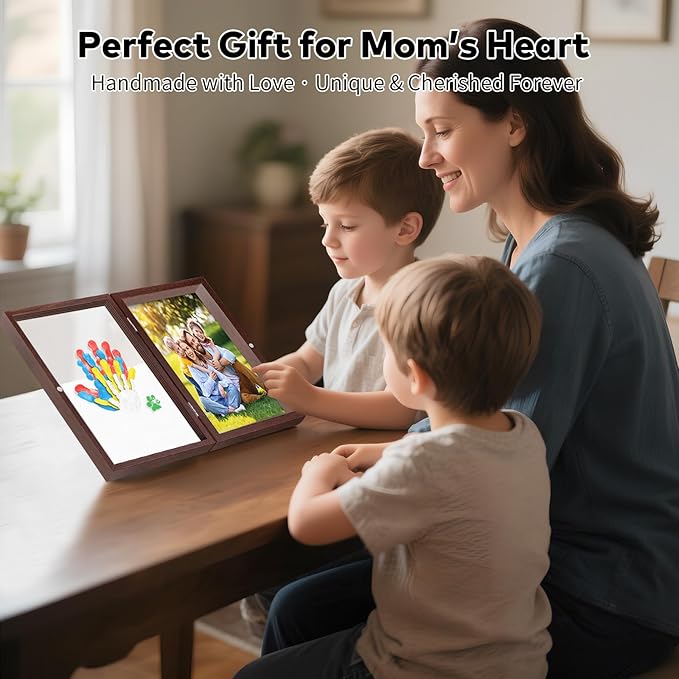 - DUAL DISPLAY MODES & PHOTO AREA: Our upgraded keepsake frame also have a photo frame feature, the photo side is big enough to hold one large photo or several smaller ones. Imagine this framed treasure on your living room wall: your toddler's tiny hand nestled in yours, surrounded by family photos that spark conversations for generations