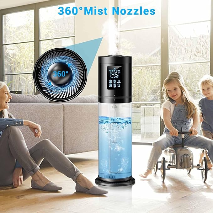 - 【Versatile Use for Home & Office】 It is a ideal choice large room humidifier for bedroom, living room, office, plant room and yoga studio, helping to combat dry air year-round. Its large capacity and smart features provide a reliable solution for maintaining healthy humidity levels in any environment