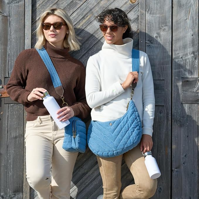 - Quality & Style: Crafted with a vegan leather adjustable trim strap, quilted denim fabric, and antique brass-toned hardware, this lightweight, durable bag is a trendy accessory that makes an ideal gift.