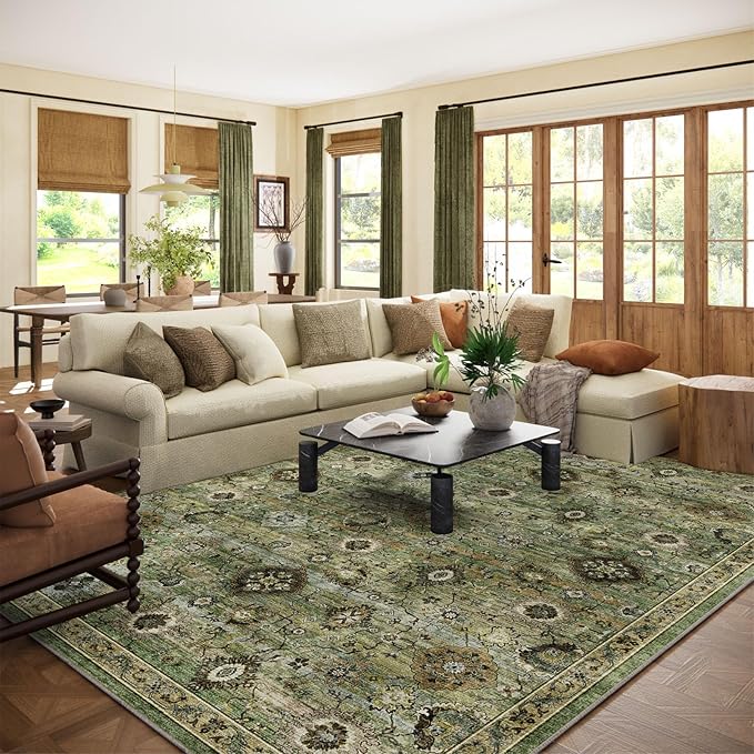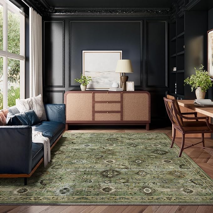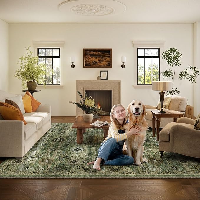Washable Area Rugs for Living Room: 8x10 Rug Boho Vintage Rugs Stain Resistant Non Slip Low Pile Lightweight Soft Carpets for Bedroom Kitchen Dining Room Nursery Kids Room Farmhouse Home Office