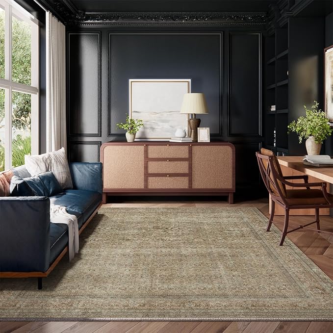 Washable Area Rugs for Living Room: 8x10 Bedroom Rug Boho Vintage Rugs Stain Resistant Non Slip Low Pile Lightweight Soft Carpets for Dining Room Kitchen Nursery Kids Room Farmhouse Living Room