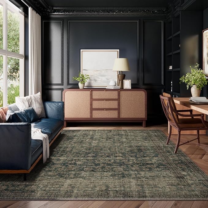 Washable Living Room Area Rug: 10x14 Rugs for Bedroom Vintage Stain Resistant Non Slip Low Pile Large Boho Carpet for Kitchen Dining Room Farmhouse Kids Room Nursery