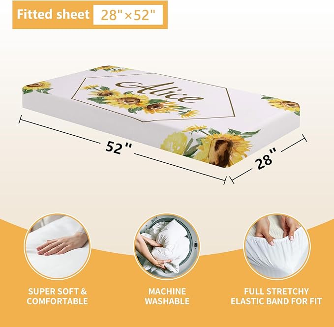 Personalized Baby Bedding Set - 5 Pcs Custom Infants Bedding Set with Infant Name - Double Layer Nursery Crib Set for Girls Boys - Customized Gifts for Toddler Baby Shower - Yellow Sunflower