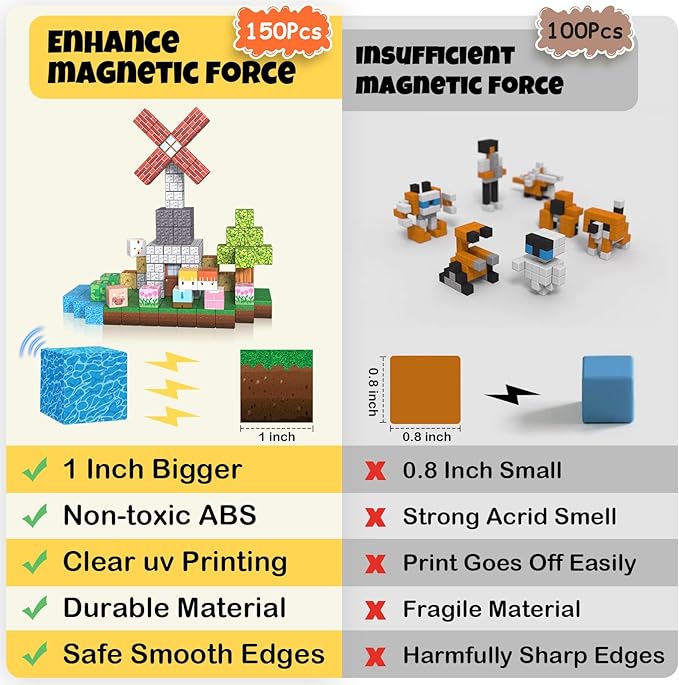 - ๐ช๐๐๐ ๐ง๐๐ญ๐ฌ ๐๐จ๐ซ ๐๐ข๐ ๐ ๐๐ซ, ๐๐จ๐ซ๐ ๐๐ญ๐๐๐ฅ๐ ๐๐ซ๐๐๐ญ๐ข๐จ๐ง๐ฌ - Our upgraded magnetic blocks include that securely lock the pieces together, enabling your child to build more complex, stable, and taller structures๐๏ธ. Each block is carefully crafted from premium, eco-friendly materials, providing durability and endless hours of play without the frustration of collapsed creations.